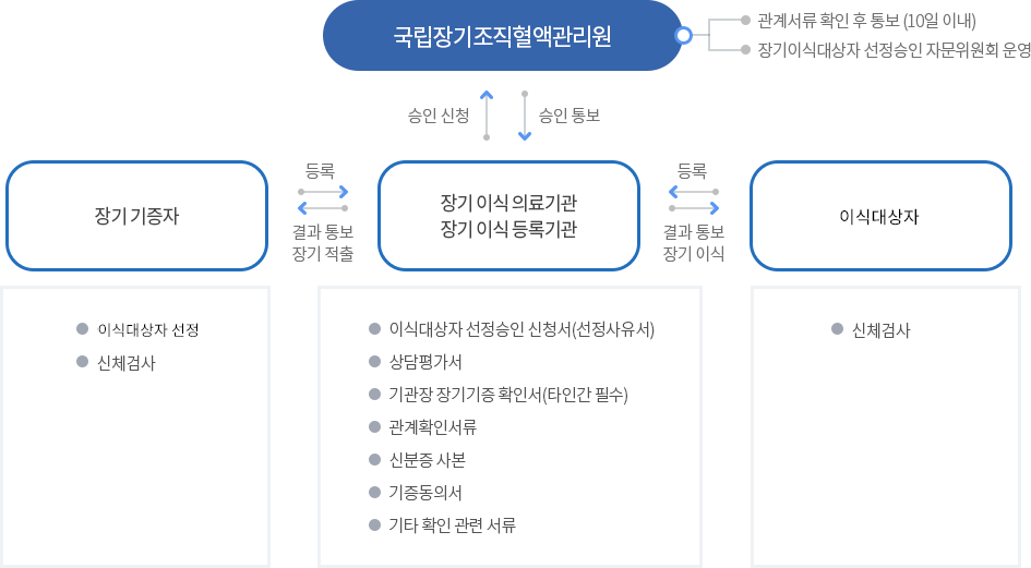 이 경우 미리 국립장기이식관리기관로부터 이식대상자 선정승인을 받아야 합니다.